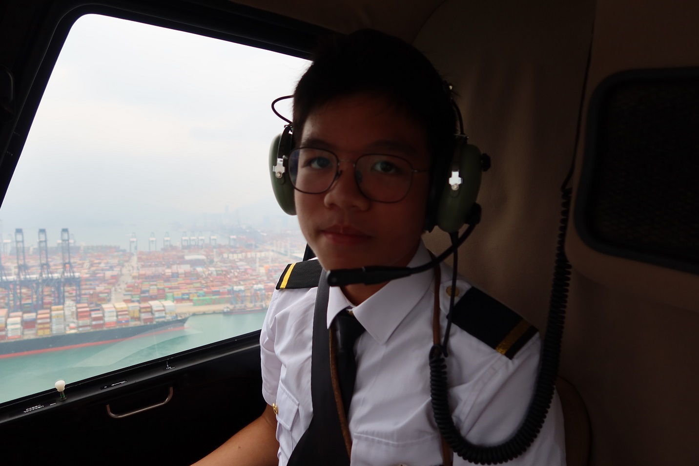 本校再於10月舉辦兩日一夜「航空領袖進階培訓」,加入真實飛行體驗,讓學生影隨式近距離觀察機師操作飛機。26位同學在訓輔組老師帶領下,分批乘坐直昇機,飛越鹽田港及於內地與香港海岸線繞航,近距離觀察機師操作實況。