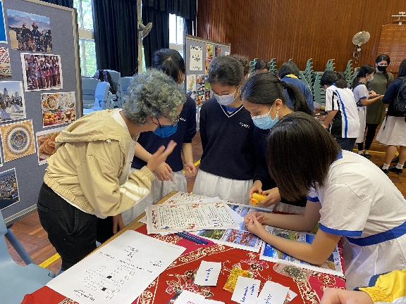 禮堂設有六個文化攤位,分別由六個國籍的來賓負責,與學生透過英語進行互動,認識世界各地的傳統習俗。