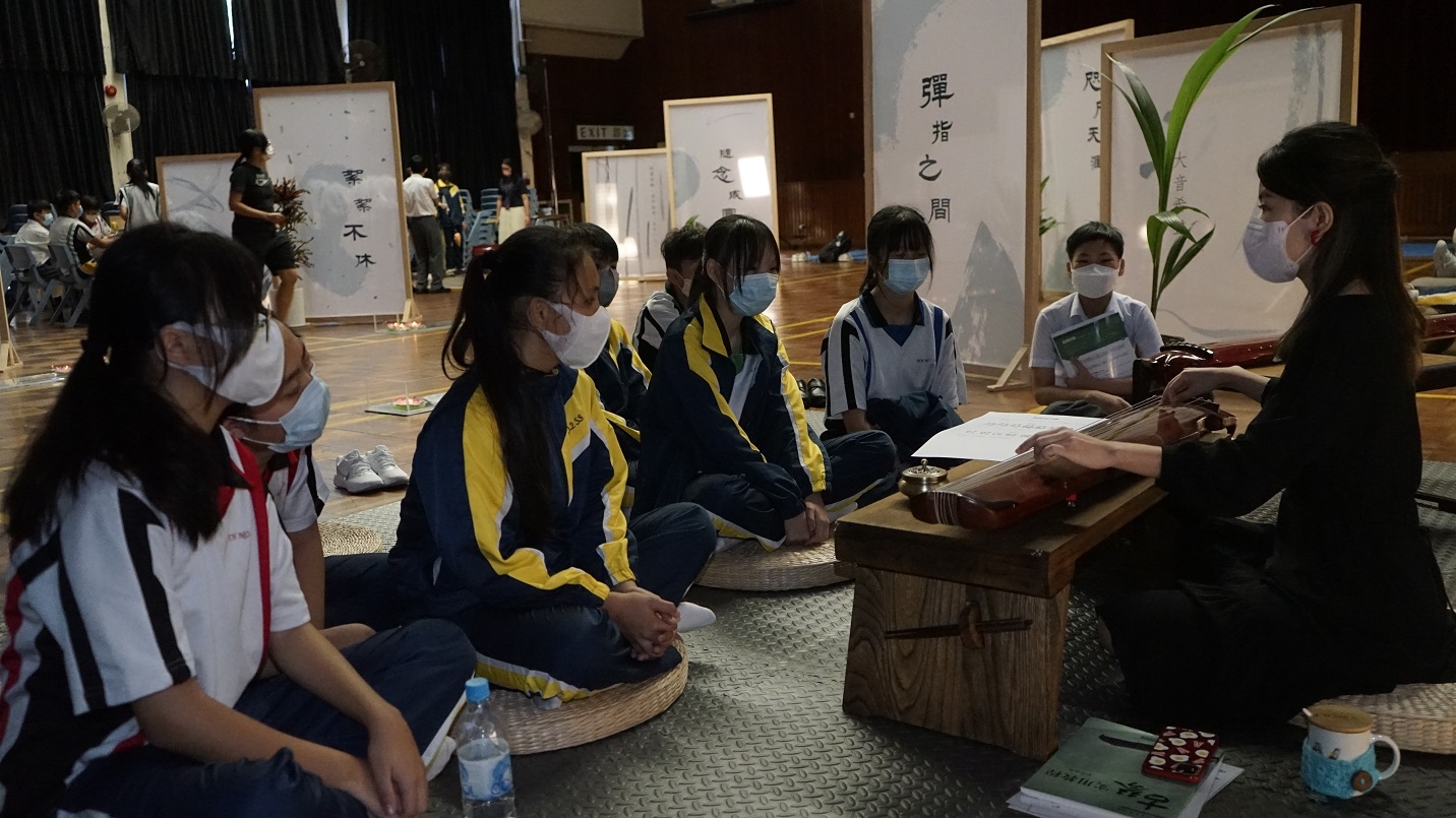 藉古琴之樂,音樂科導引同學裊裊琴聲中,遠離浮躁和喧 囂。在「極靜」的音樂中,感受紛陳多變的音色。「彈指之 間,大音希聲。」 |