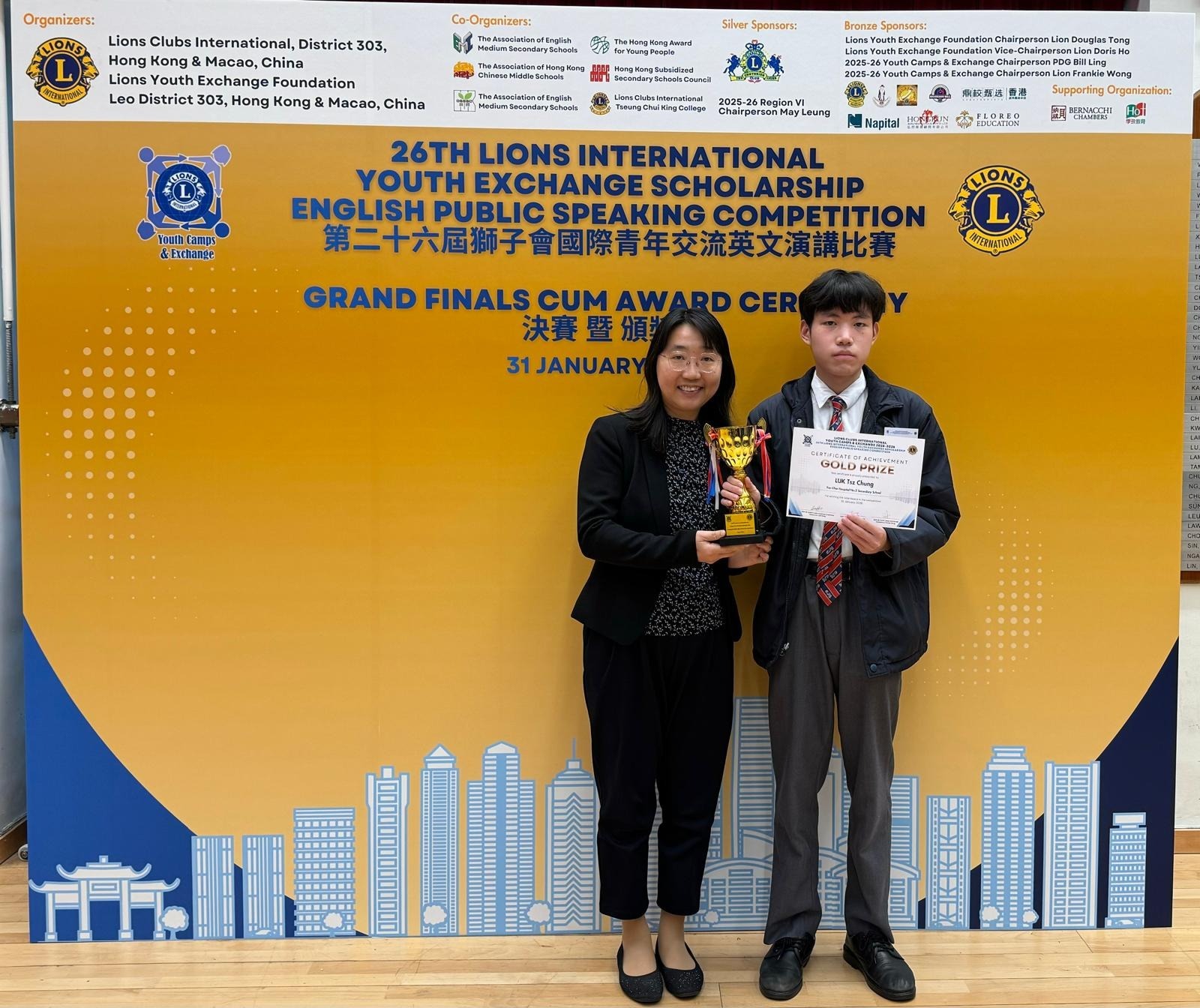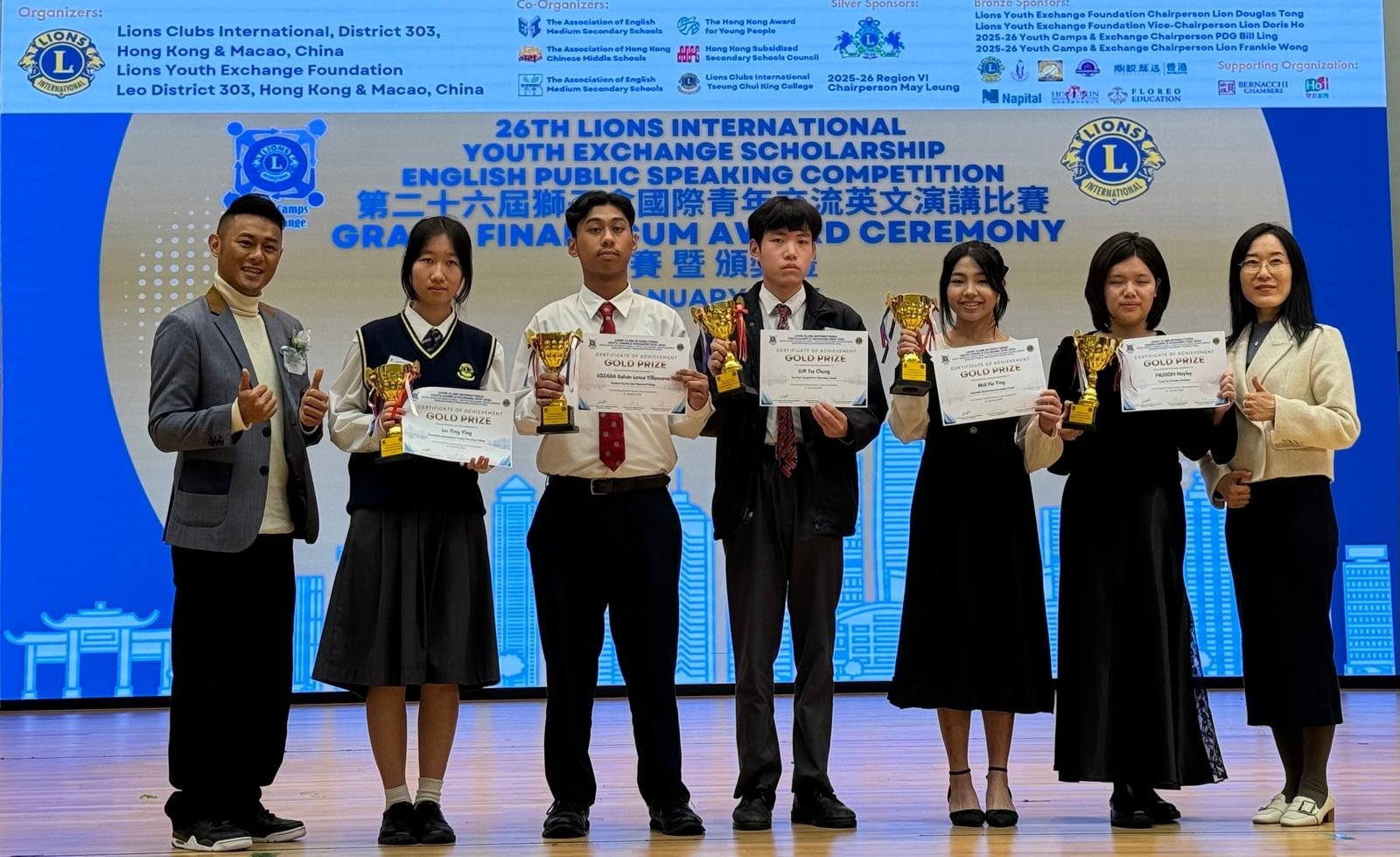 恭喜5D陸子聰同學,榮獲「獅子會國際青年交流英文演講比賽」金獎。